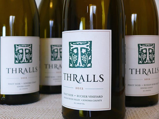 When I first started thinking about starting my own label, I didn’t want to call it Thralls. Not that I ever expected my winery to be bought out, but I’d heard the story about Pax, and how he kind of lost his name for a while, and Gary Farrell had been purchased, and you just kind of lose your name, right?