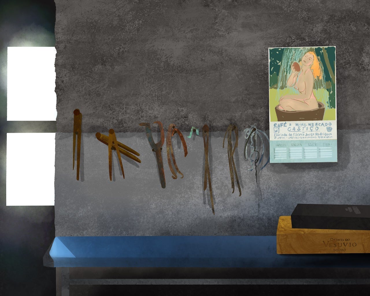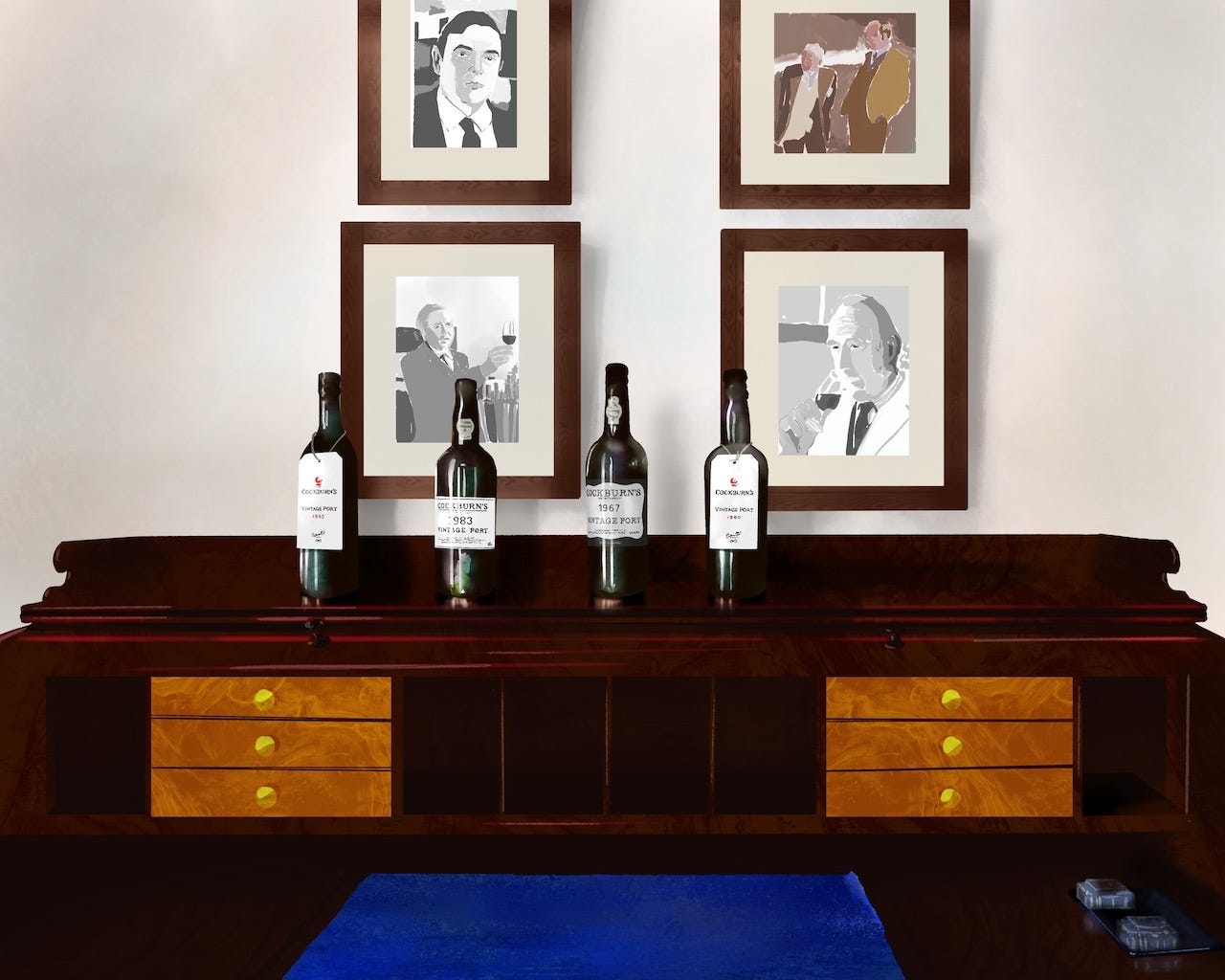 Quinta dos Canais has supplied Cockburn’s since the 19th century and is now, at 270 HA, one of the largest estates of the Symington group. The estate overlooks a breathtaking swath of river, and across the water sits Quinta da Vargellas, owned by Taylor Fladgate and occupied at harvest by its family elders, Alistair and Gillyane Robertson. (Read my essay, “Barefoot in the Douro,” about my visit to Vargellas.) In this image, Ports from strong vintages rest on a desk crowned with portraits of its progenitors; history captured in bottle and frame.