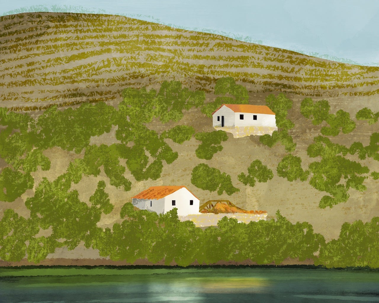 In the late 1860s, phylloxera marched up the Douro Valley, wiping out vineyards and driving farmers off their land. The expense of replanting was too great, and many of the hand-built stone terraces, carved into the riverbanks to give both vine and worker stable footing, fell into ruin. Some owners moved to Brazil seeking fortune, and some returned later to replant, tinkering not only with grapes but also mulberry for silk production and olive groves for oil. Yet many pre-phylloxera properties remain abandoned today, their buildings now husks crumbling into the granite landscape, their vineyards overgrown with brush.