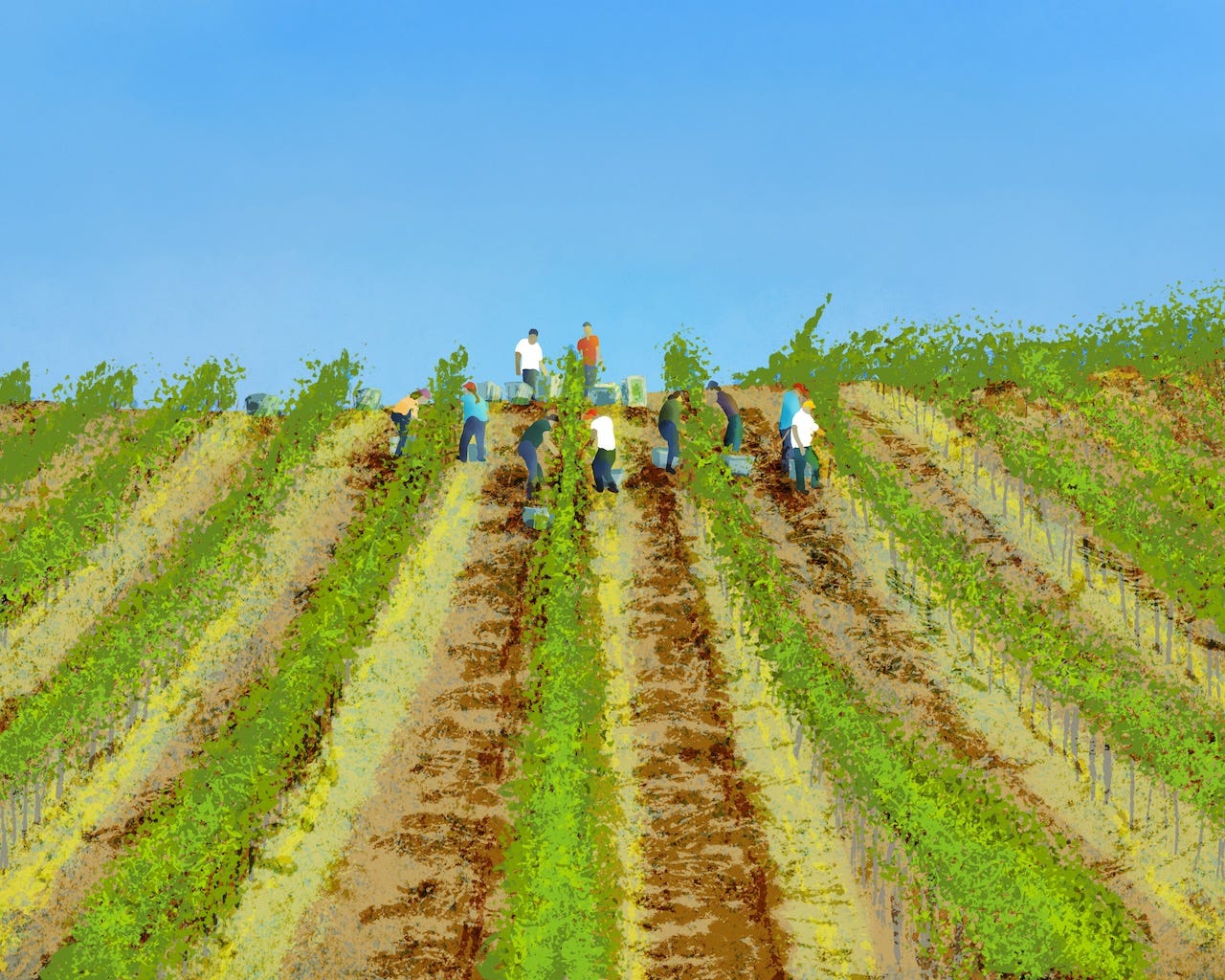 “The holy grail of winemaking was automatic lagares,” Rupert Symington told me, as we watched a tractor with a boom arm crawling along a vine row. “The holy grail of viticulture are the new automated pickers.” Symington had collaborated with a Spanish university and a German equipment company to develop a machine-harvesting approach suited to steep and narrow sites. We watched as the unit shook berries off their stalks and spewed them into bins. The tractor’s air intakes were getting clotted with leaves, and many clusters were getting left behind or dropping to the ground, leaving two dozen extra field workers to bat cleanup. The system only works on vines of a specific height, trained single cordon and spur pruned. It can only flow one way without breaking vine trunks; at the end of each row, the tractor had to back up to start the next. (A vineyard with cordons running in alternating directions would ease that problem, but training-over a vineyard is a multi-year exercise.) When I visited in 2019 there was only one Beta unit in existence, and it did not look like a home run to me. But it’s a start.
