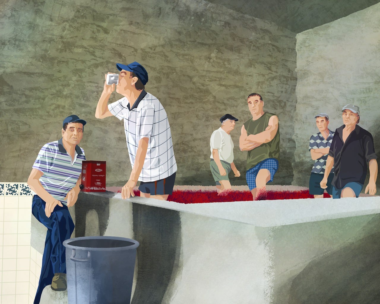 Granite troughs, called lagares, were ubiquitous throughout the Douro, and while they’ve now been supplanted by stainless steel and mechanized treaders, many houses still use them with their best fruit. Grapes arrive and are sorted before being added to the troughs, whereupon barefoot treaders stomp the clusters for four to eight hours; here a worker pauses for a sip from a tin cup of boxed wine. The human foot is considered ideal for this work, as it gently pops open the skins and warms the must to start the yeasts working. “Our most sophisticated method is foot-treading in granite lagares,” said David Guimaraens. “It applies intense but gentle physical action that produces the best extract. The beauty is that it’s a method that’s very well proven.” Still, most of the work is done in the vineyard, he said. “Foot treading isn’t about the skill of the winemaker. My skill is deciding when to pick, what to pick, and the blend.”