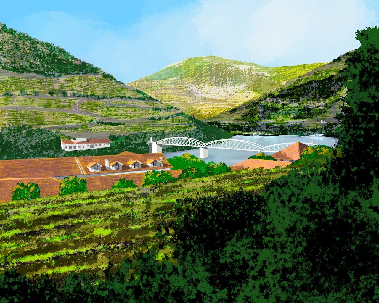 Douro wines were historically field blends, with vines of Touriga Nacional, Touriga Franca, Tinta Roriz, and others (even some white grapes), grown, harvested, and vinified all together. The results were often uneven, with some grapes overripe and others too tart. More recently, vineyards have been replanted to varietal monoculture, which allows viticulturalists to monitor development of each variety, choose appropriate interventions when needed, and zero-in on a proper picking time. The gains in quality offset a loss of rustic (nostalgic) charm.