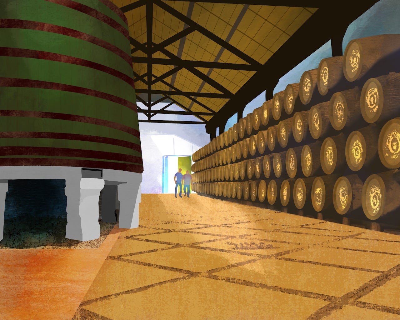 Modern stainless lagares use mechanical agitation to crush the fruit, but some producers use a mix of foot treading and mechanical action. Regardless, it’s critical to extract maximum color and flavor at this step because the clear grape spirit added during fortification — which ends up being 20 percent of the Port — dilutes the color. Port is one of the few red wines that do not go through malolactic fermentation; it doesn’t have a chance to do so before fortification, but the abundant residual sugar tames its tart malic acid.