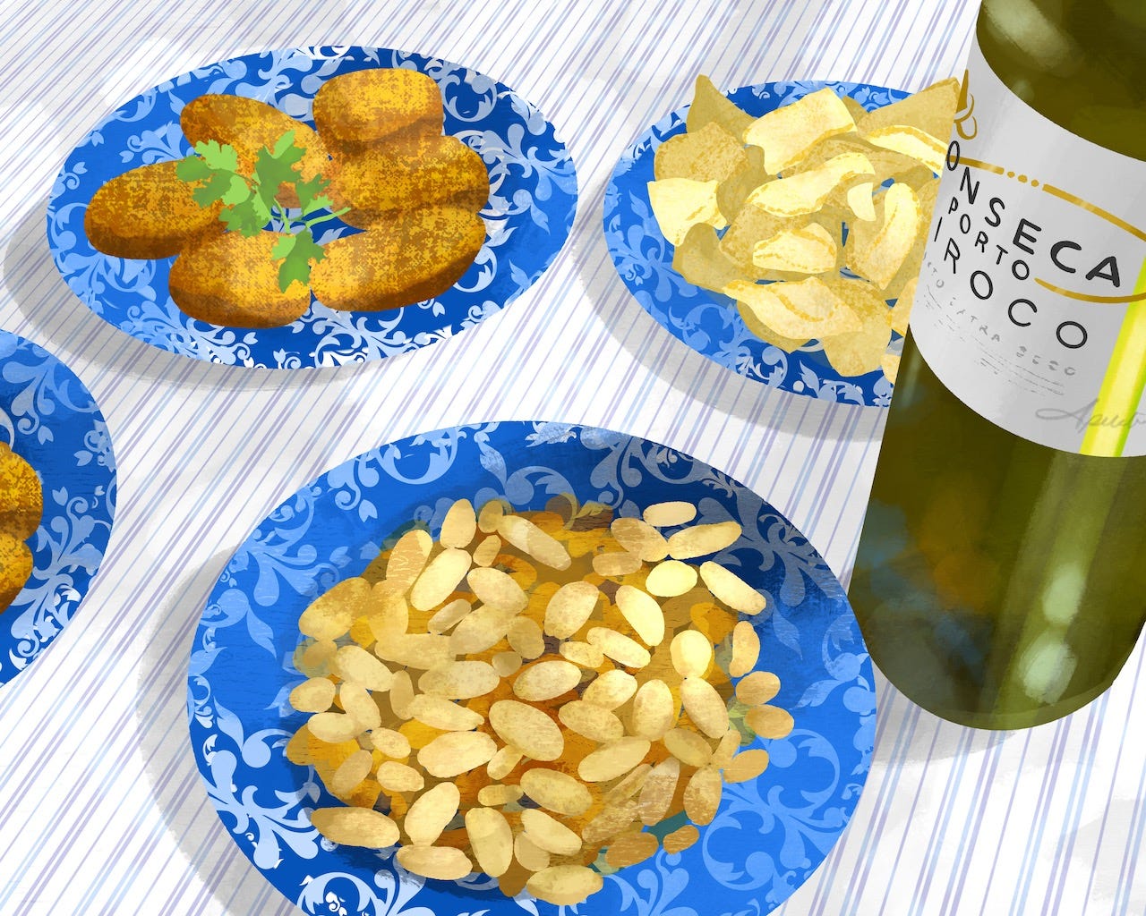Taylor Fladgate is credited with inventing, or at least popularizing, white Port in the early 20th century, but now it’s produced by many houses. Essentially a lighter, more refreshing line extension, white Port is made from local grapes like Malvasia, Rabigato, and Viosinho and fortified to 20 percent ABV; it generally sees no wood aging. White Port is served chilled or over ice, often mixed with tonic water, citrus, and mint for a low-alcohol cocktail affectionately called a “portonic.”