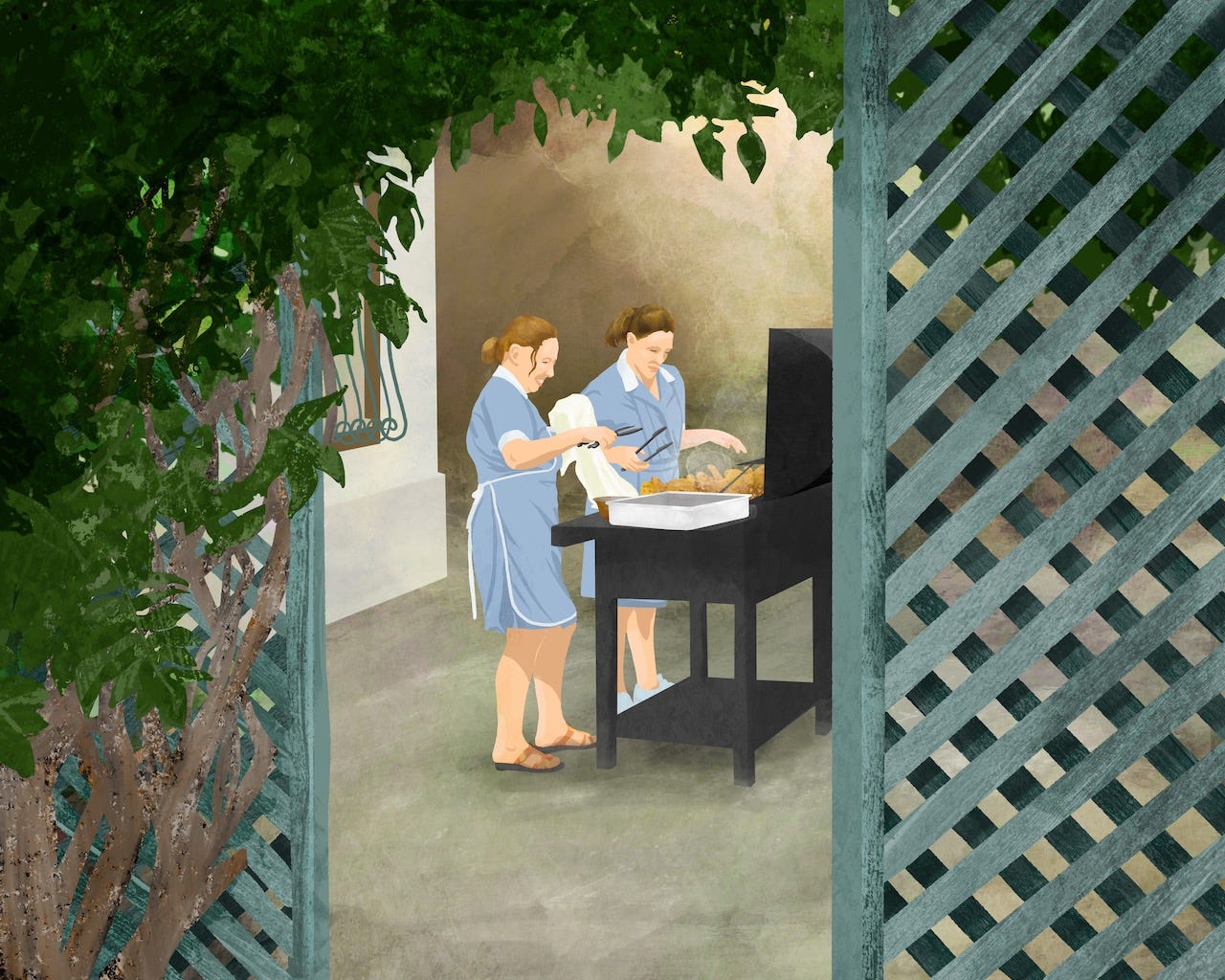 Port families employ household workers to cook, clean, and entertain guests, including the many visitors, like me, who arrive during the busy harvest season. Dinners may be lavish or homely; in this case there was squash soup, grilled chicken and sausages, fried potatoes, and a simple salad. The two women shown here have worked for the Symingtons for two and three decades, and while I wanted to speak with them, I learned they live a half an hour away by train or bus and the meal ended at 10:30 PM. I did not want to impose further upon their already long day.